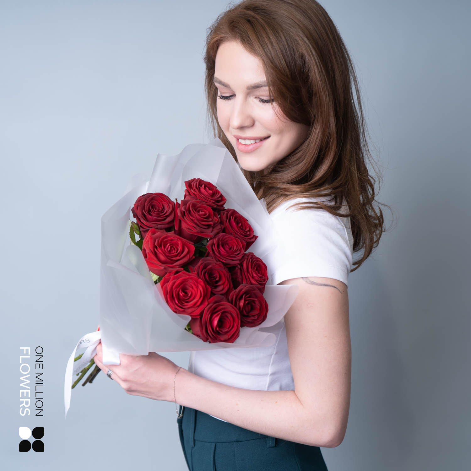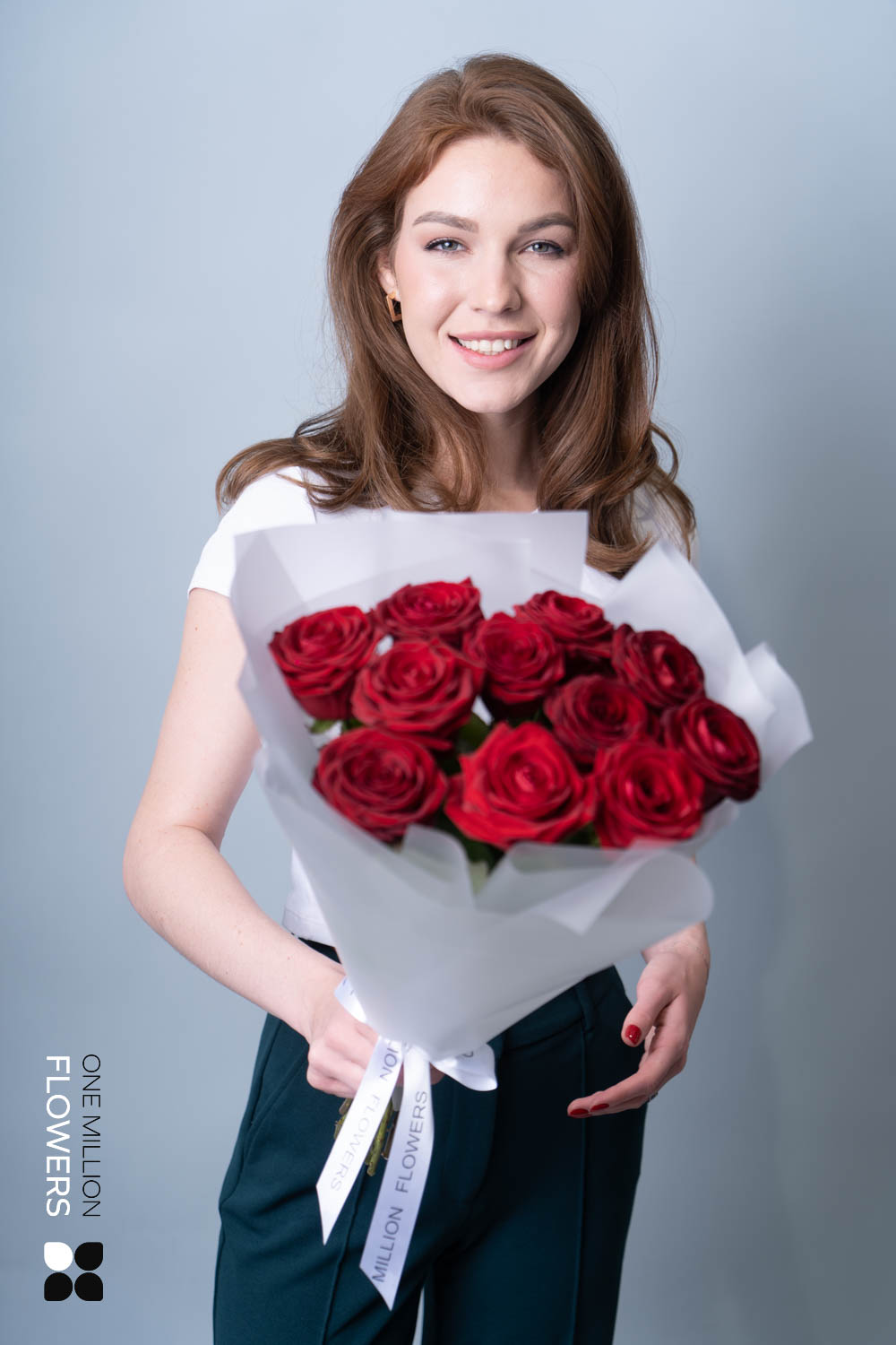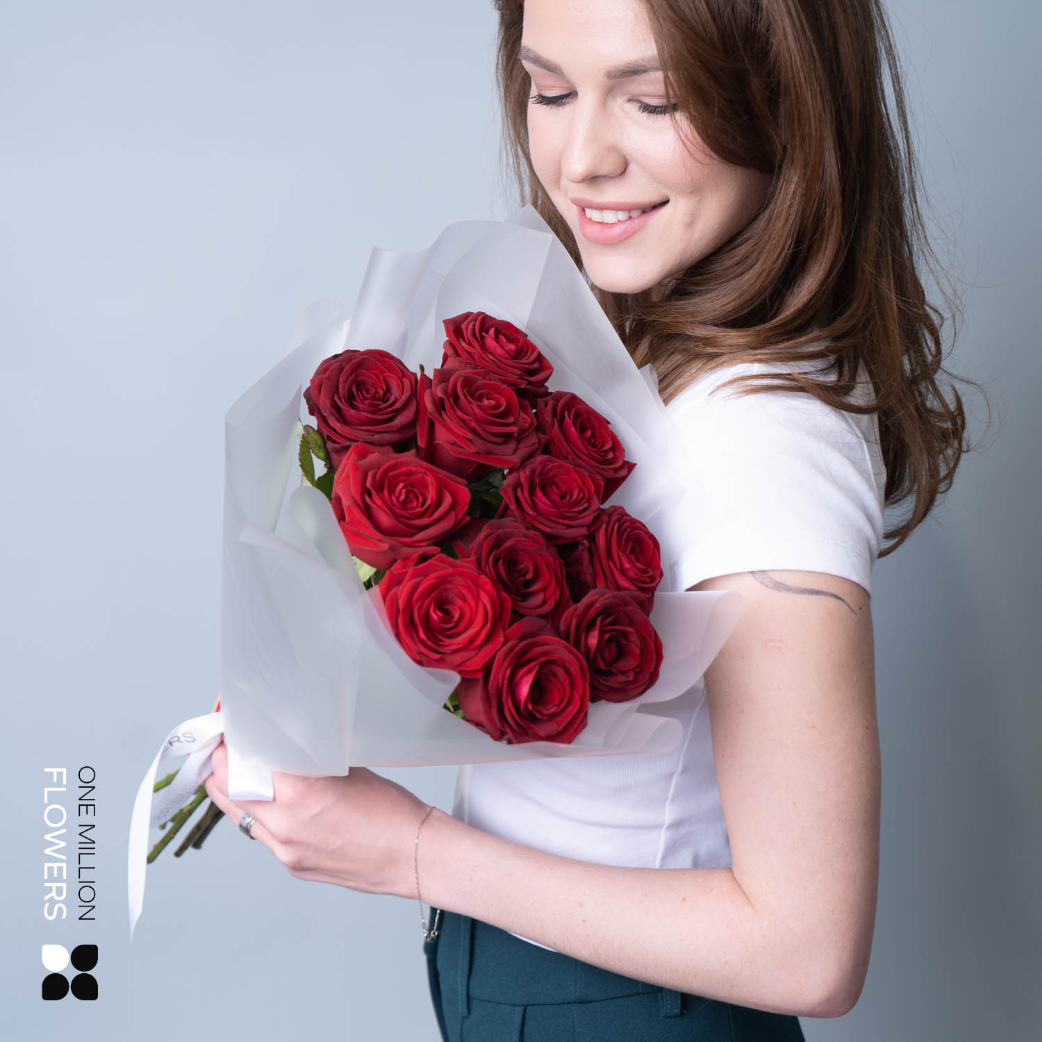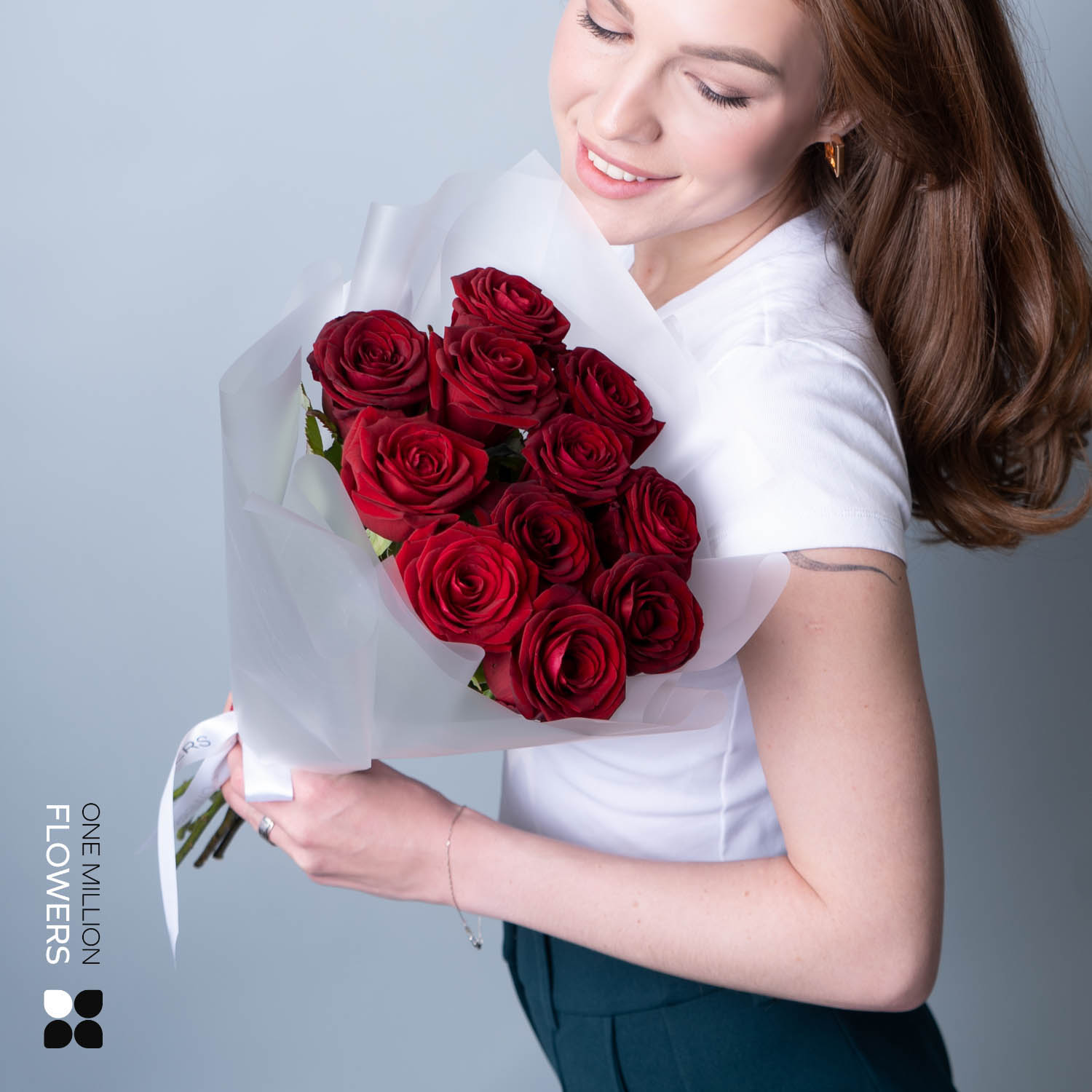 "Букет из 11 "Рэд Наоми" White 50 см представляет собой элегантную композицию из 11 великолепных красных роз с высотой стебля 50 см. Этот букет наполнен нежностью и страстью, идеально подходит для торжественных случаев и особых моментов.