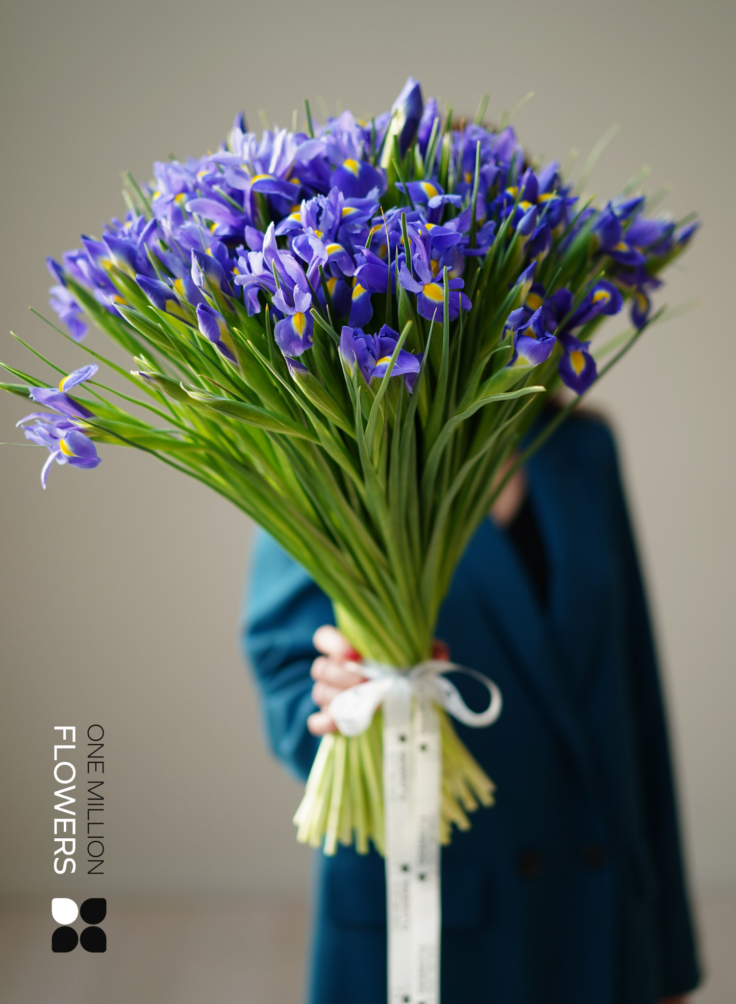 Состав букета: Ирисы синие — 101 шт.