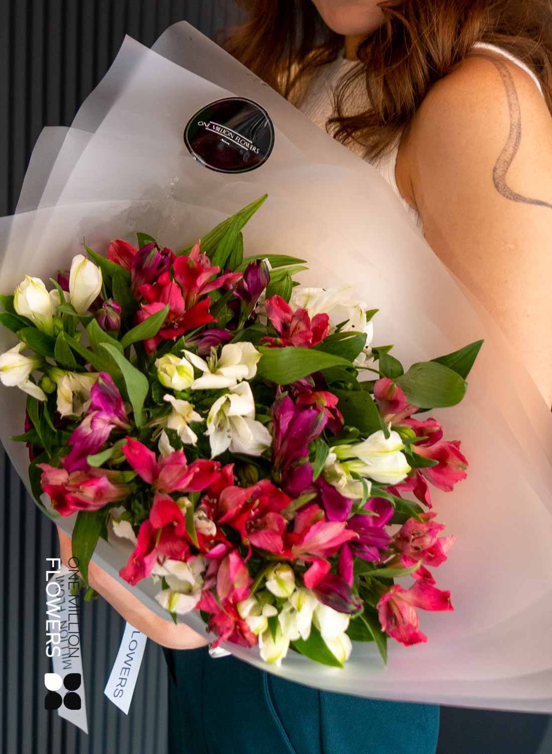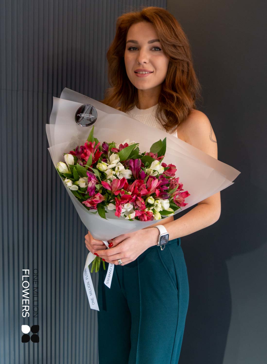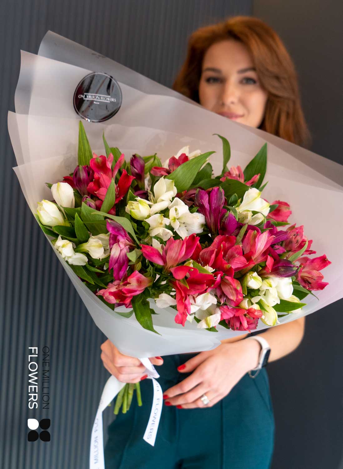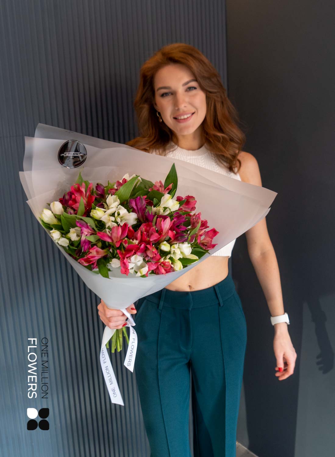 Заказать букет "Альстромерий Романо" Grand можно всего в несколько кликов на нашем сайте. Мы обеспечиваем быстрое и качественное обслуживание, доставка цветов в Москву производится быстро и надежно. Каждое предложение оформляется с заботой о вас и ваших близких. Откройте двери для свежести и радости, сделав шаг навстречу незабываемым моментам с „One Million Flowers“.