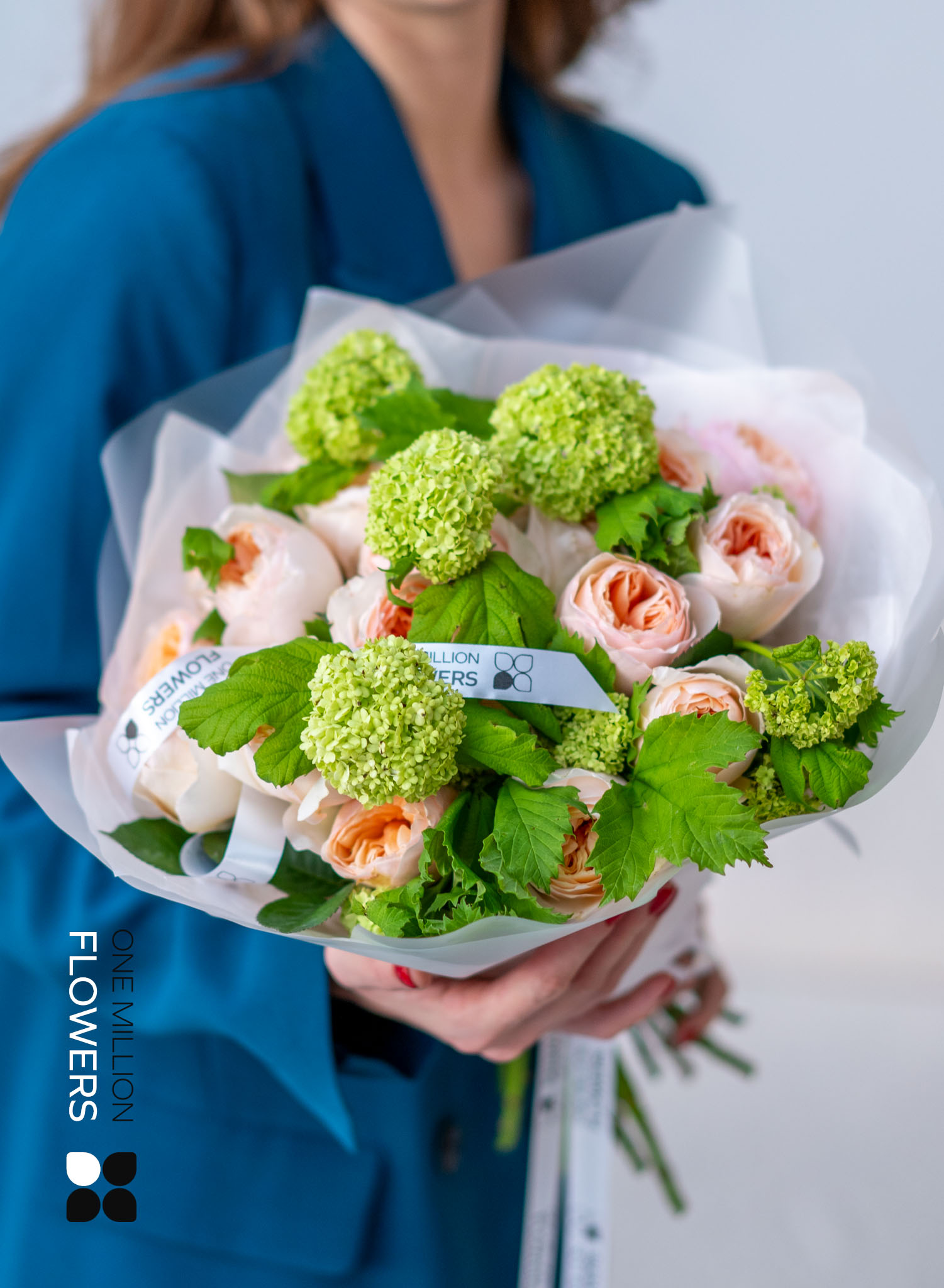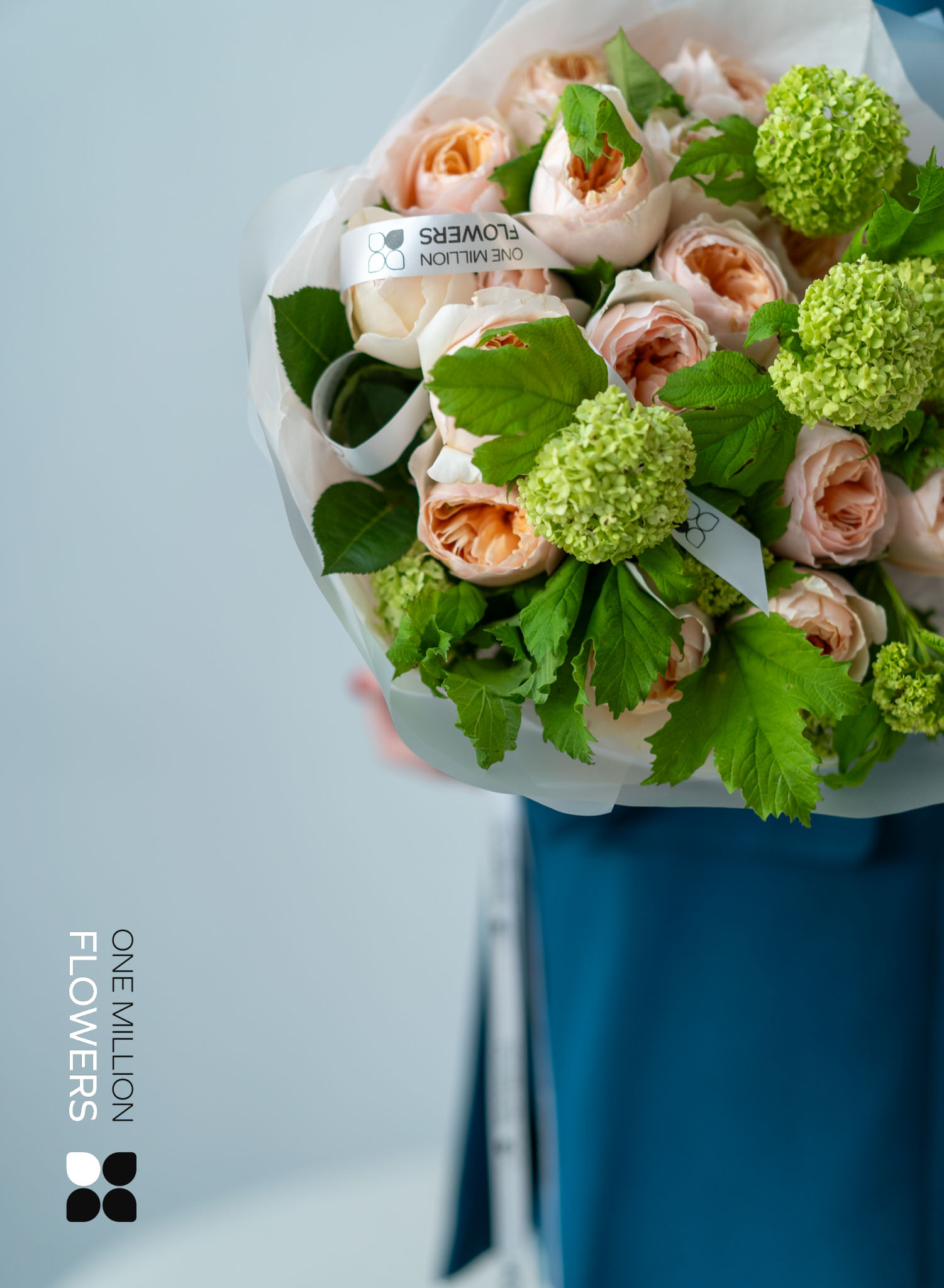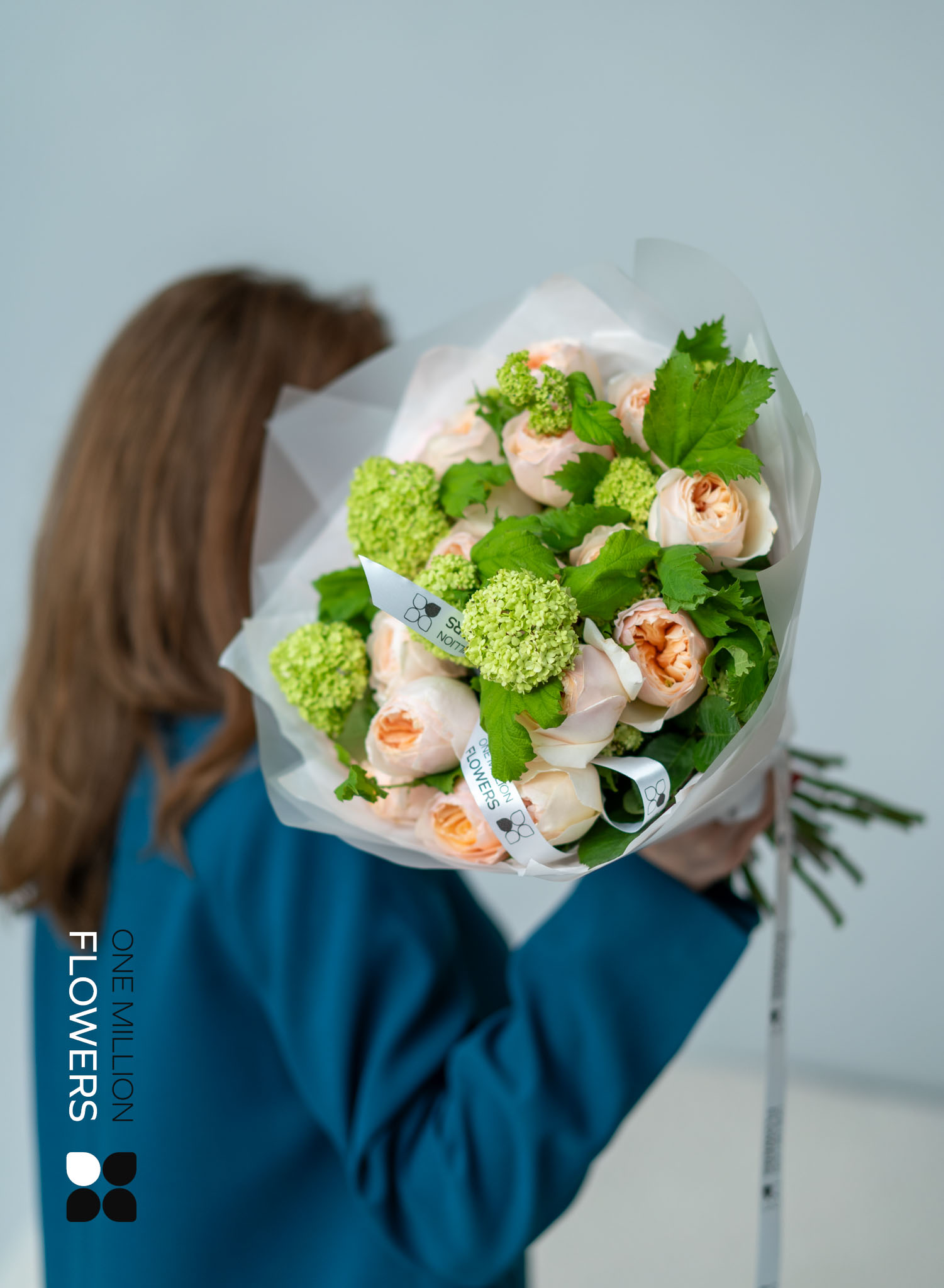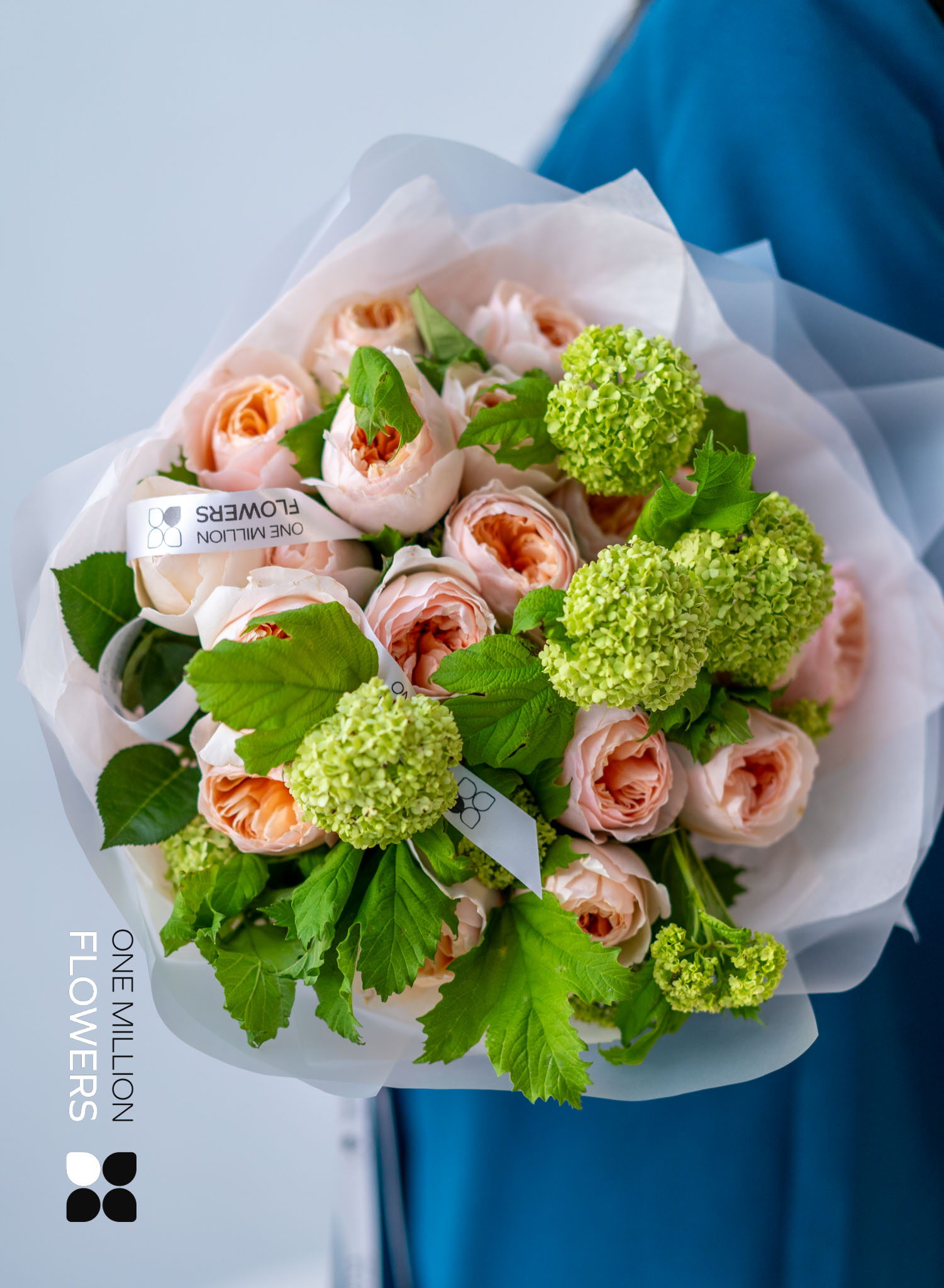 Букет Duo "Джульет Виб" включает в себя три изысканных веточки вибурнума и двадцать одну пионовидную розу сорта Дэвид Остин Джульетта. Этот великолепный цветочный ансамбль объединяет в себе нюансы нежности и стиля, придавая любому моменту особое значение.