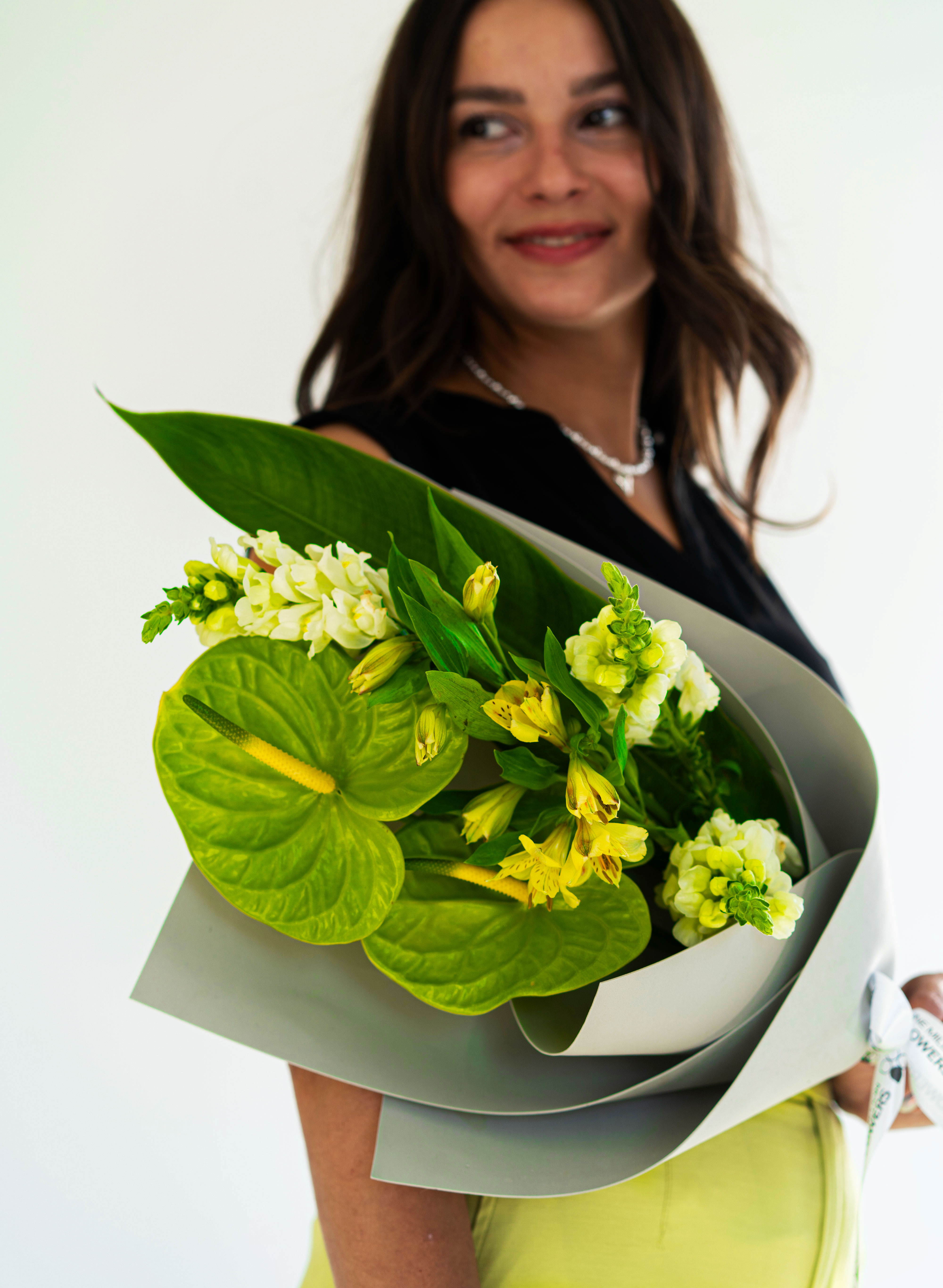 Современный, стильный и нестандартный — букет «Экстра Грин» Грей создан для тех, кто ценит оригинальность и свежие идеи. В этой композиции гармонично сочетаются экзотический антуриум с его глянцевыми листьями, нежный антирринум, придающий объем и легкость, утонченная альстромерия и эффектная стрелиция, добавляющая динамику и контраст. Букет наполнен природными оттенками зелени и яркими акцентами, создавая атмосферу роскоши и свежести.
