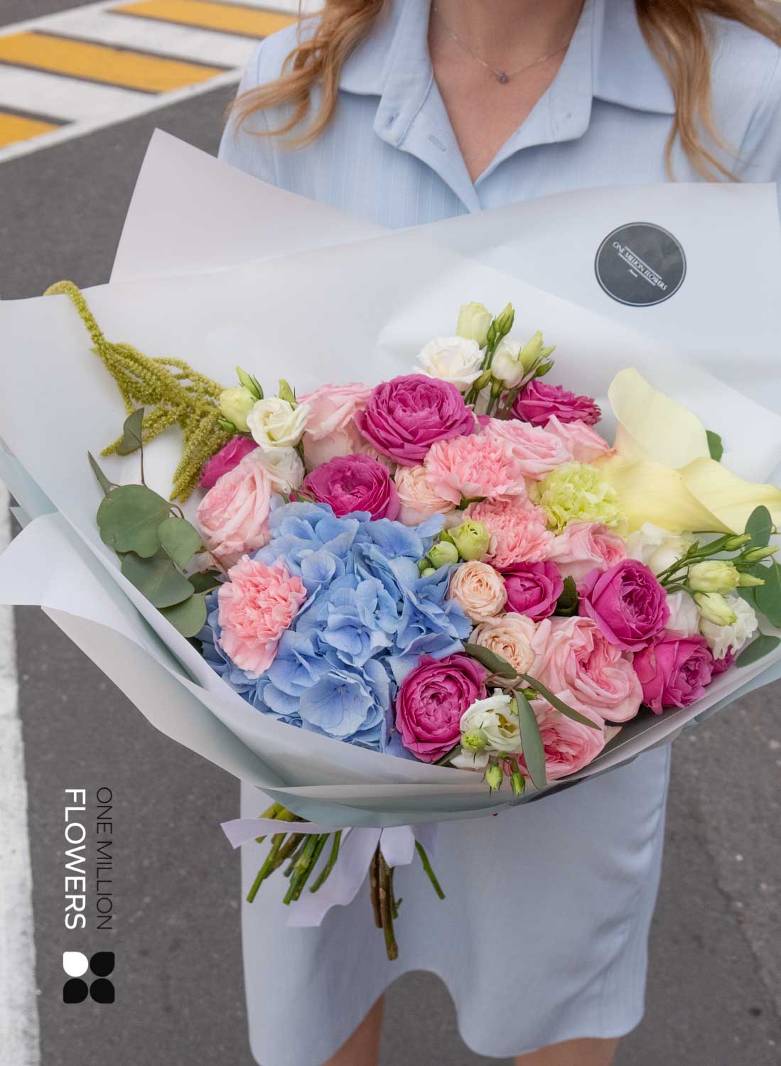 Заказать букет "Гортензия Сани" очень просто! Выберите нужный вариант на сайте One Million Flowers, оформите заказ онлайн — и наш курьер доставит цветы на дом быстро и аккуратно. Мы предлагаем купить цветы с доставкой в Москве недорого, а также предлагаем дополнительные услуги: оформление букетов шарами, открытками и подарками. Работая в районах от центра до окраин, включая Коммунарку и Солнцево, мы гарантируем свежесть и идеальный внешний вид цветов. Порадуйте своих близких вместе с нами!