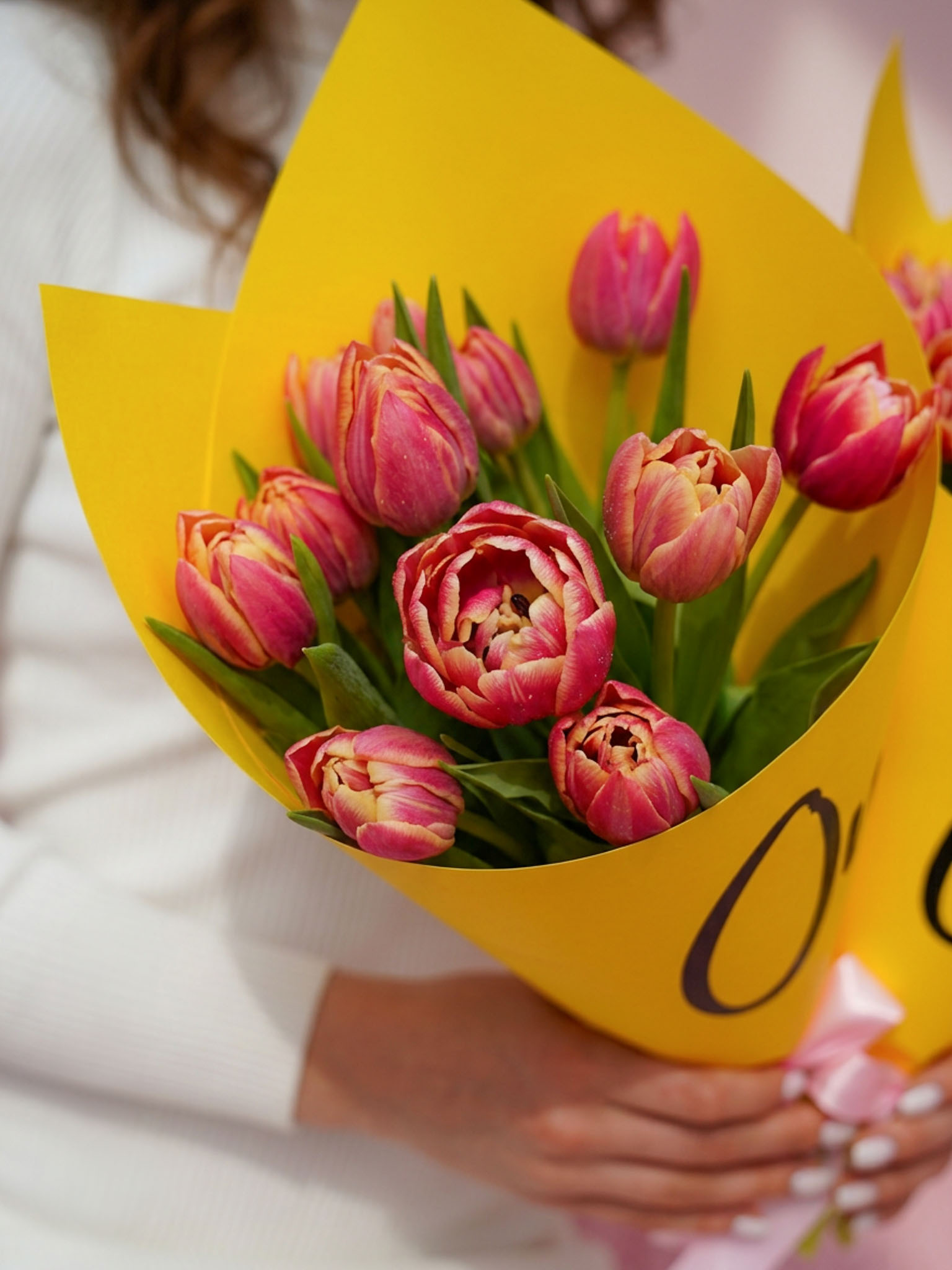 Для того, чтобы этот букет радовал вас как можно дольше, необходимо соблюдать несложные инструкции по уходу. Помещайте его в чистый стакан с прохладной водой и регулярно меняйте жидкость. Тюльпанам нравится светлое место без прямого солнечного освещения и сквозняков.