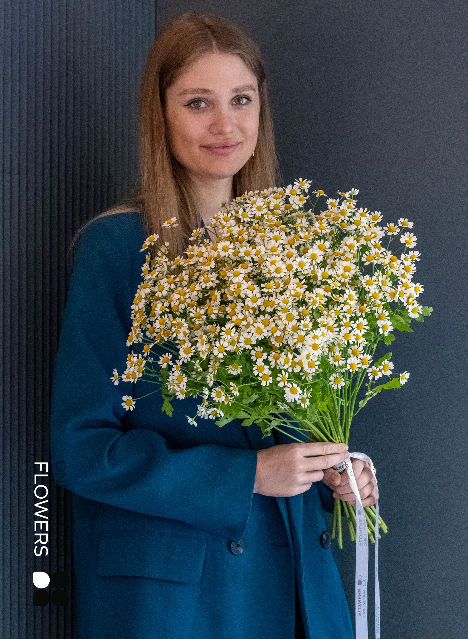 Букет состоит из 25 свежих ромашек (танацетум). Мы отбираем только самые лучшие экземпляры, чтобы гарантировать свежесть и долговечность букета. Каждая ромашка, попадающая в наш букет, проходит строгий отбор, чтобы вашим близким достался только самый жизнерадостный и нежный подарок.