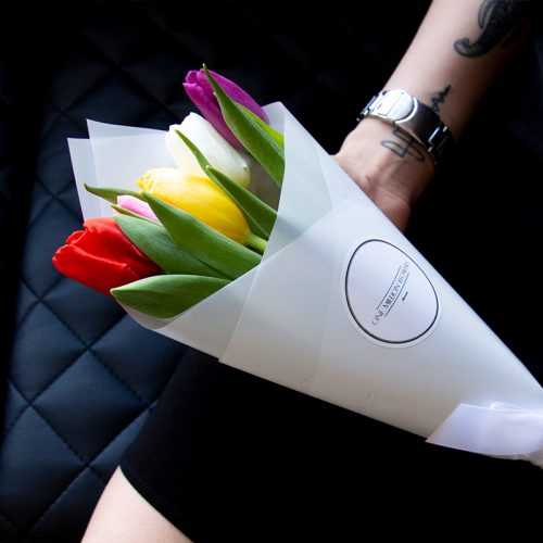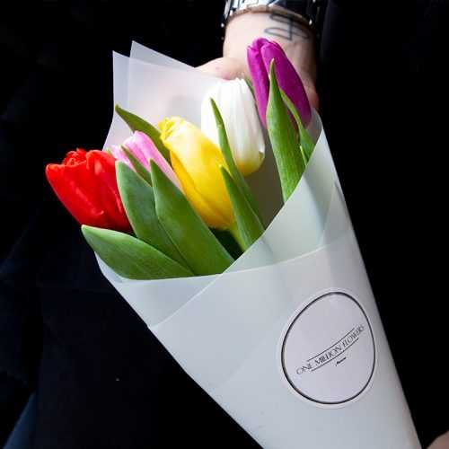 Праздник 8 Марта представляет собой отличный повод удивить своих коллег или друзей букетом из 5 тюльпанов "Микс". Радужные оттенки этих цветов символизируют равную красоту и силу каждой женщины. Также этот шикарный букет будет украшением для дня рождения или юбилея, ведь он яркий и стильный, поднимая настроение имениннику.