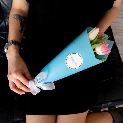 Букет из 5 тюльпанов "Вайт Пинк" (От 25 букетов)