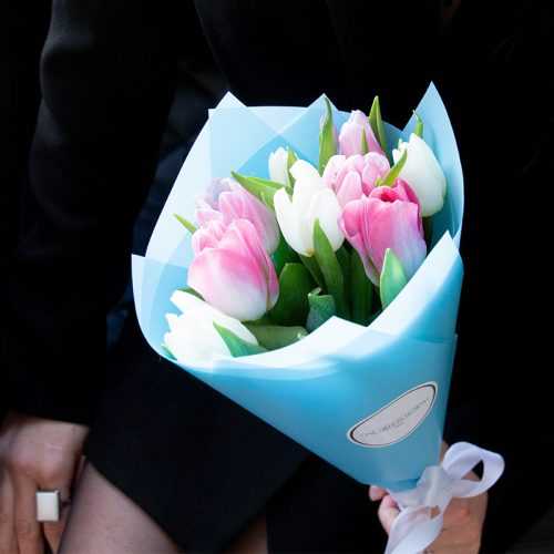 Закажите наш букет из 9 тюльпанов "Вайт Пинк" прямо сейчас и создайте момент радости для любимого человека или привнесите яркость и нежность различным особенным случаям. Будьте уверены, что букет будет выразительным символом вашей любви и заботы.