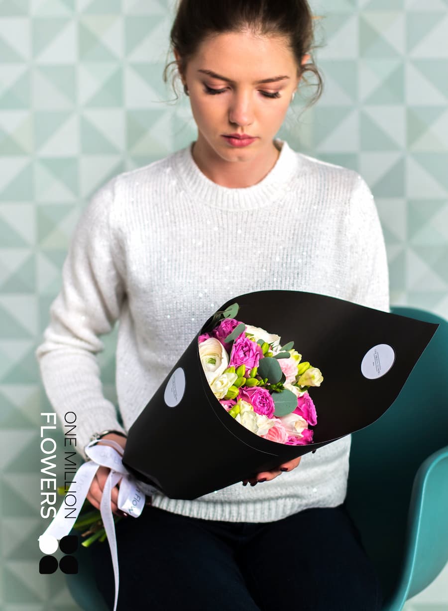 Букет "Камбриа" Black — это настоящее произведение искусства, созданное для удивления и вдохновения. В его состав входят 7 кустовых роз Мисти Баблз, которые обладают невесомой красотой и нежным ароматом. Композицию дополняют 15 фрезий, 3 розовых диантуса, 4 белых ранункулюса и 2 пионовидные розы Пинк Охара. Эти цветы создают невероятный контраст и дарят частичку весенней свежести в любую погоду. Каждая деталь продумана и тщательно подобрана, чтобы вызвать восторг у получателя.