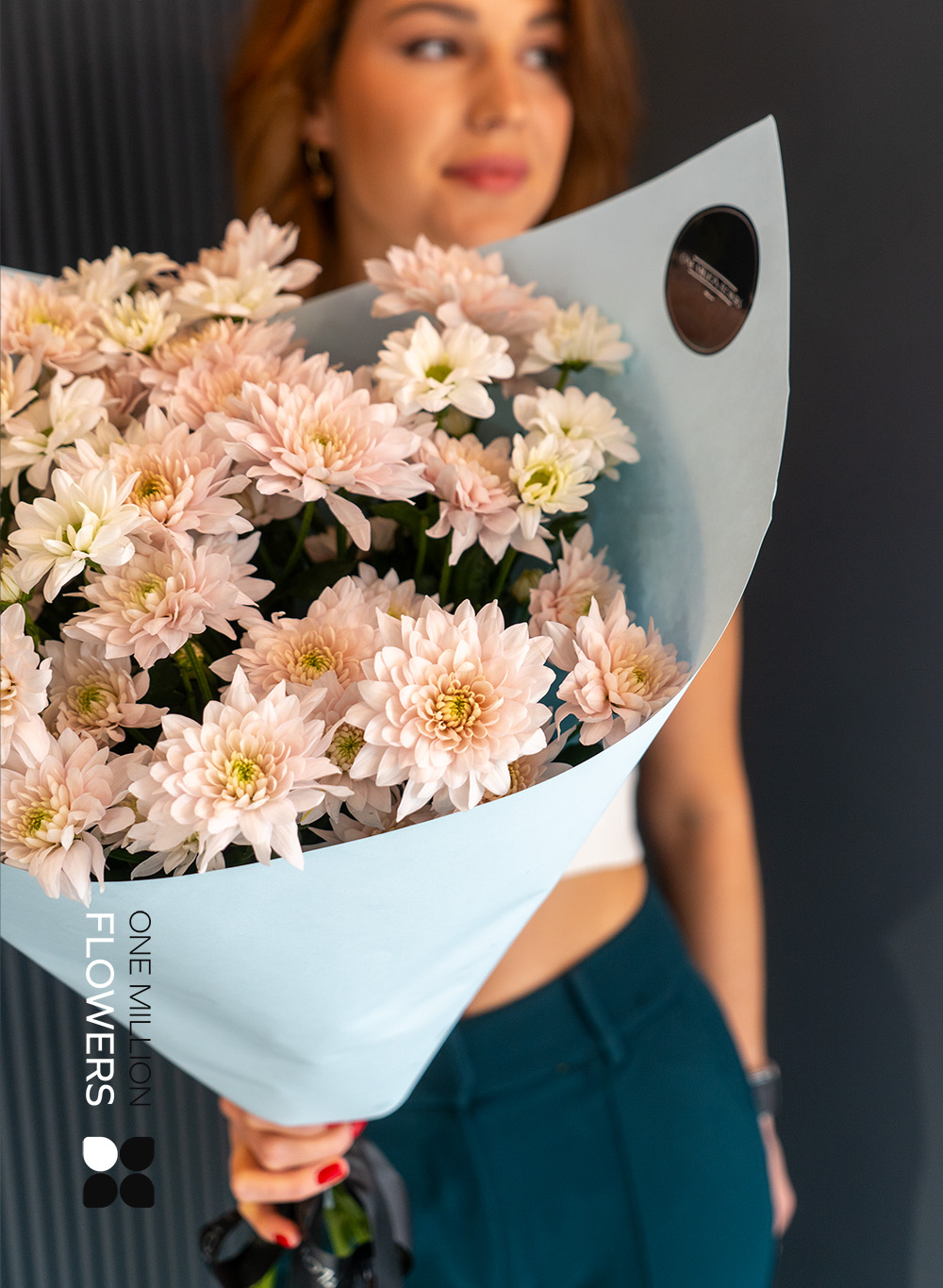 Букет "Сантини Креман" Blue — это истинный шедевр флористики, созданный для тех, кто ценит красоту и изящество. Он наполнен гармонией и свежестью, которая превращает любой момент в праздник. Состав этого букета включает белые ромашковидные хризантемы и кустовые розовые хризантемы, которые составляют плавный и стильный ансамбль. Их нежные оттенки не только радуют глаз, но и создают атмосферу спокойствия и уюта.