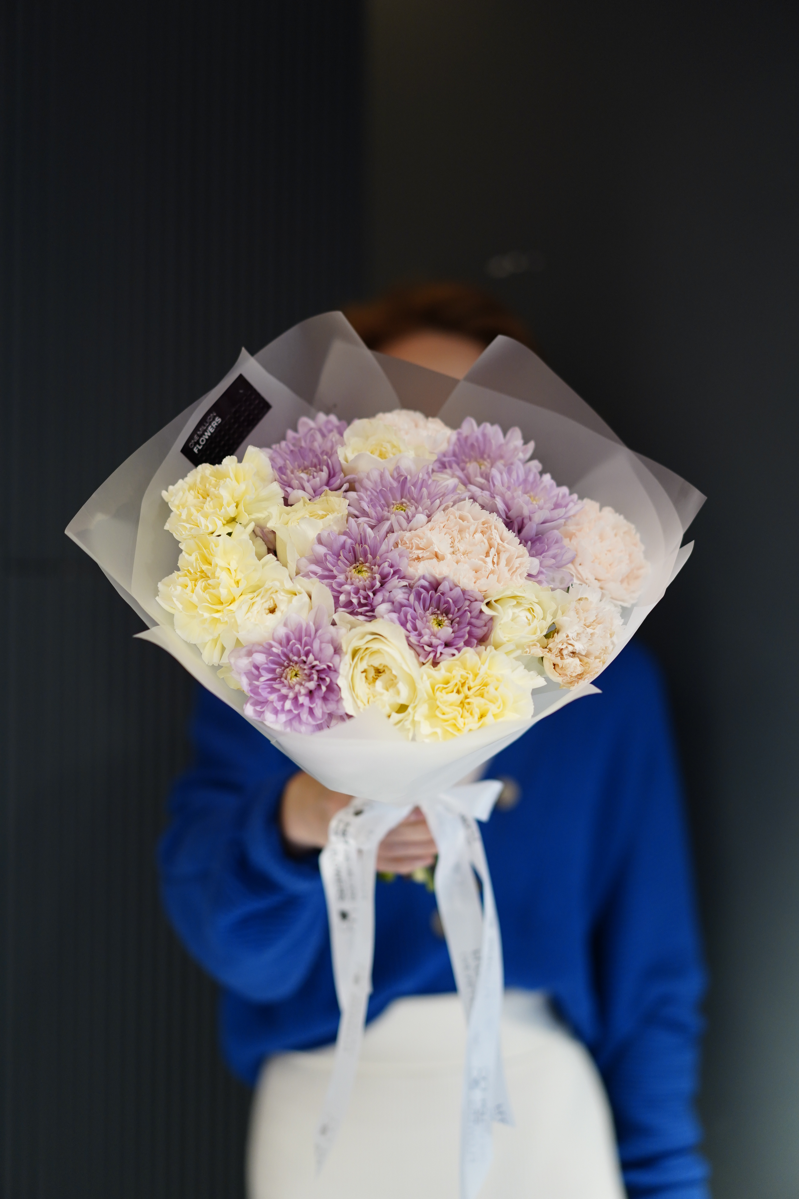 Букет "Соул Вайлет" представляет собой гармоничное сочетание пионовидной розы Пинк Охара, сиреневых диантусов и элегантного эвкалипта. Каждый компонент был тщательно подобран, чтобы создать впечатляющую цветовую палитру и запоминающийся аромат, который украшает любой праздник. Пионовидные розы, символизирующие страсть и романтику, в сочетании с нежными диантусами, олицетворяющими материнскую любовь и заботу, создают поистине волшебную композицию. Эвкалипт не только добавляет свежести, но и известен своими целебными свойствами, улучшая настроение и снимая стресс.