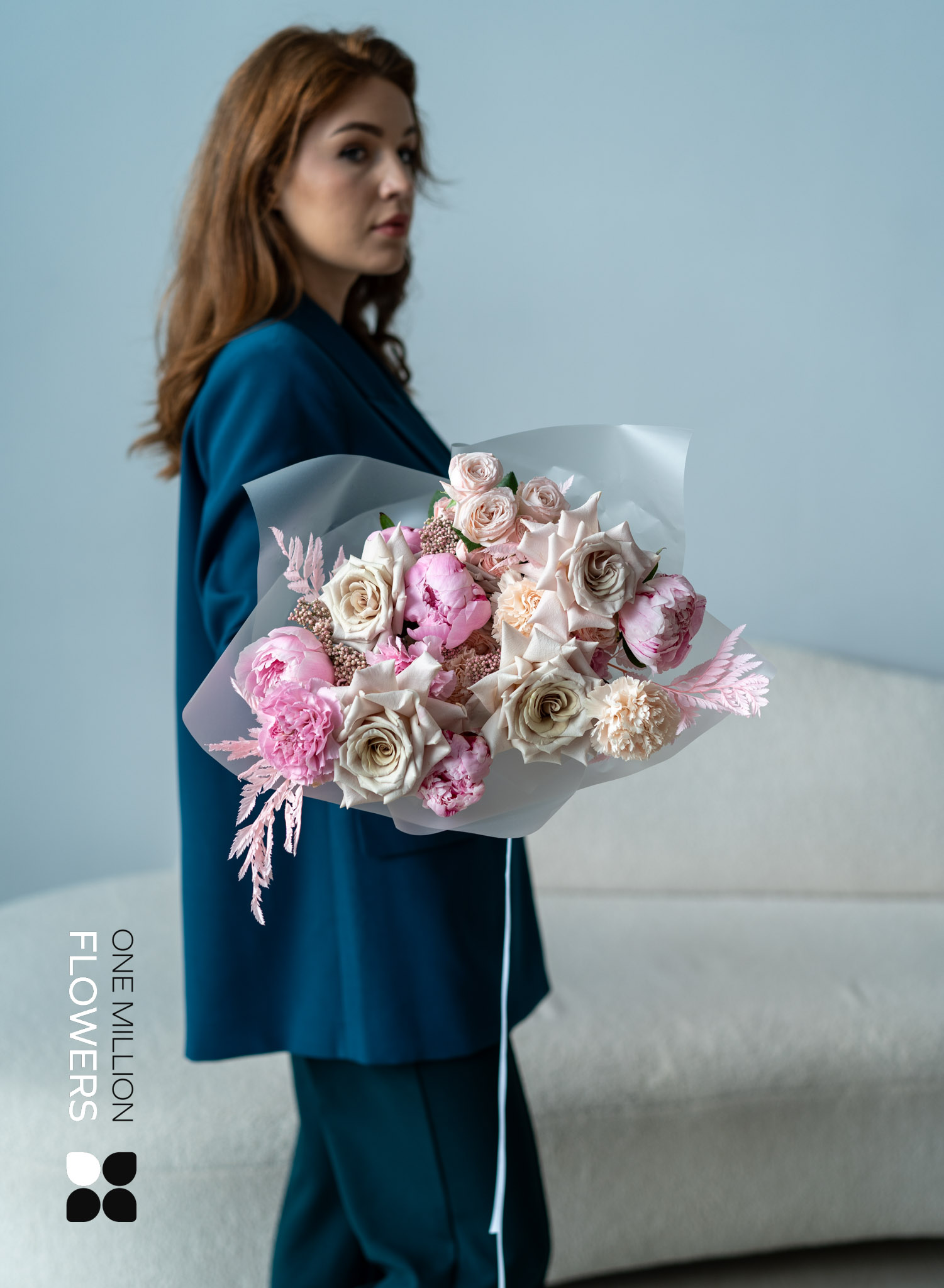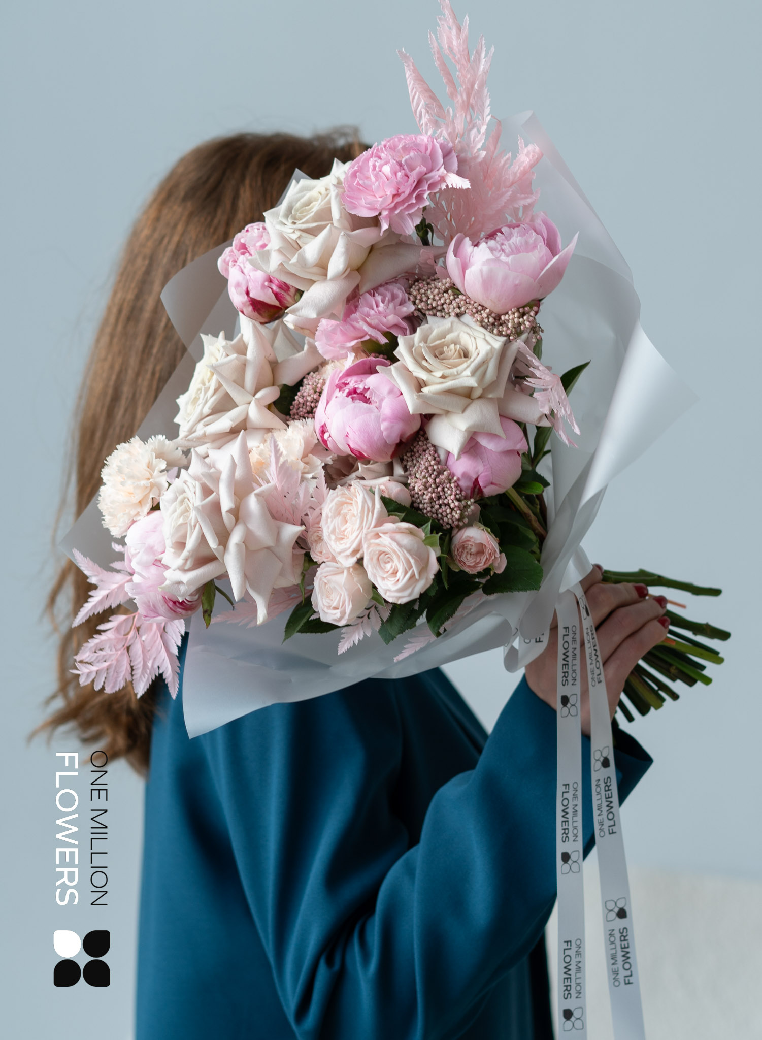 В композицию букета "Вилла Х Вайлет" входят: 8 шт. пионовидной розы Мента, 5 шт. диантуса кремового, 7 шт. пиона розового, 4 шт. диантуса розового, 4 шт. стабилизированного папоротника, 4 шт. озатамнуса и 8 шт. кустовой розы Бомбастик кремового цвета. Эта богатая коллекция цветов придаёт букету особое очарование, превращая его в идеальный подарок.