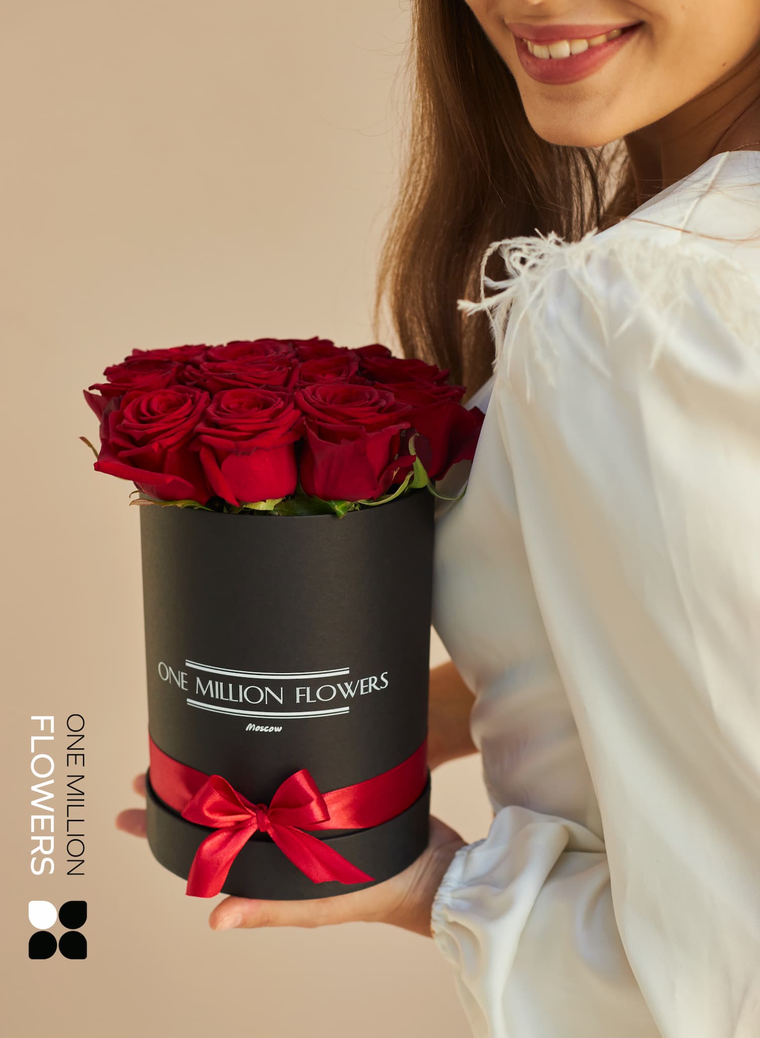 Midi — действительно большая коробка, диаметр 20 см. и высота 27 см! Среднее количество роз: от 23 шт. до 27 шт.