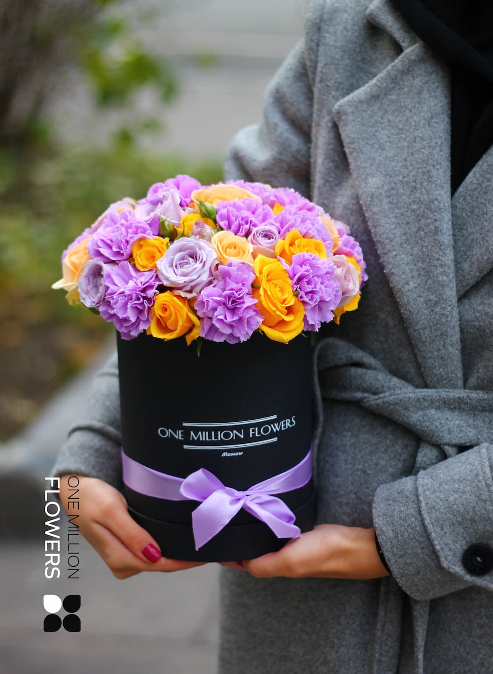 Если вы хотели бы заказать доставку цветов в коробке, но не знаете точного адреса получательницы, то просто укажите в комментарии к заказу ее контактный номер. Мы сами деликатно узнаем у нее удобное для нее место и время.