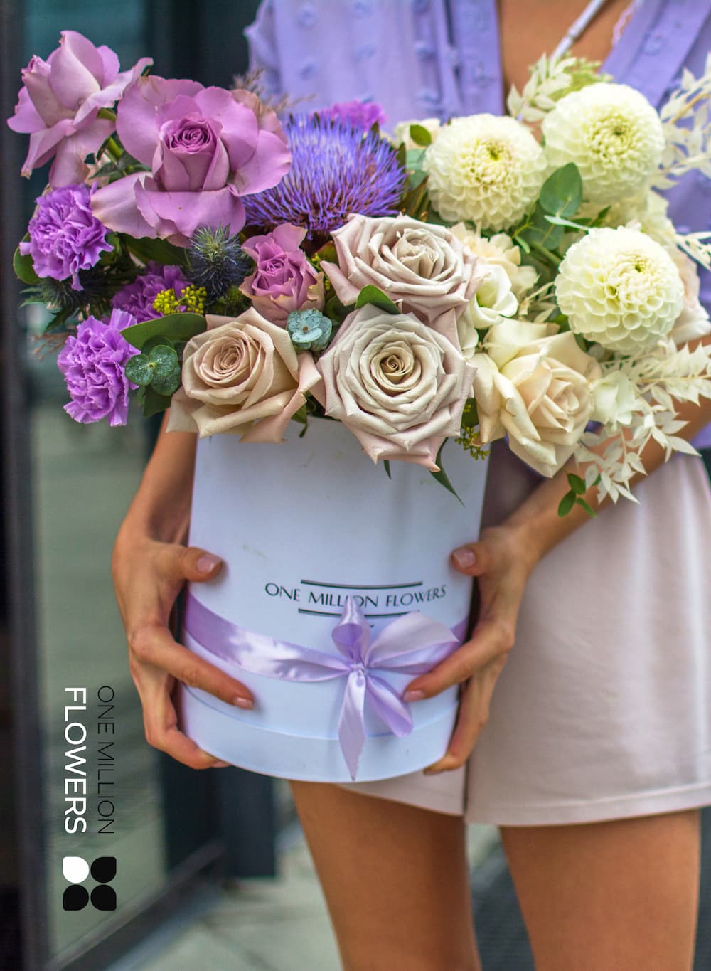 Если вы хотели бы заказать доставку цветов в коробке, но не знаете точного адреса получательницы, то просто укажите в комментарии к заказу ее контактный номер. Мы сами деликатно узнаем у нее удобное для нее место и время.