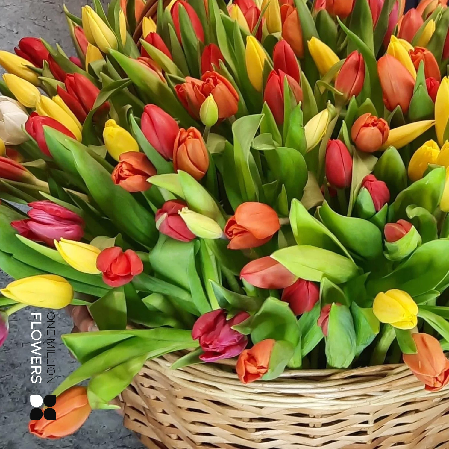 Корзина с 201 тюльпаном Микс – роскошный подарок, который украсит любой праздник или особый момент в жизни. В этом изысканном букете сочетаются яркие оттенки тюльпанов: золотисто-желтые, страстно-красные, солнечно-оранжевые и нежно-белые цветы создают потрясающую гамму красок.